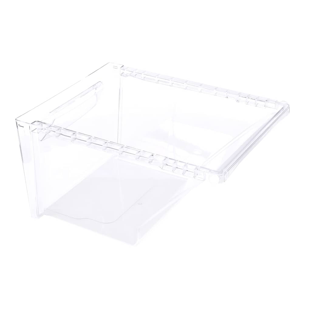 Presenting the Vegetable Pan Crisper Drawer Assembly designed exclusively by GE. This component is an integral part of your refrigerator, designed to create an optimal humidity level for the fruits and vegetables it houses. By doing so, it aims to keep your produce fresher for a longer period. Installation is simple and straightforward, with detailed instructions provided in the owner's manual. Not only does this part enhance the longevity of your food items but it also upholds the interactive design and functionality of your GE refrigerator. Trust in brand GE to deliver on uncompromised quality and performance.