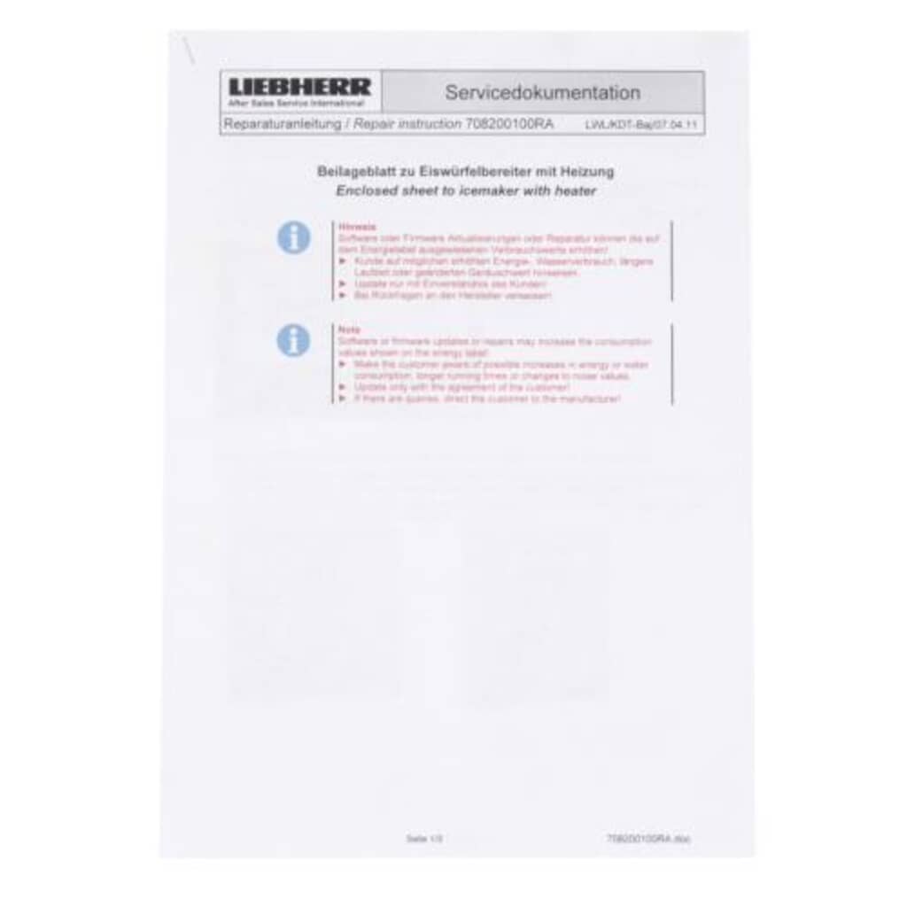 Liebherr Insert Part# 708200100