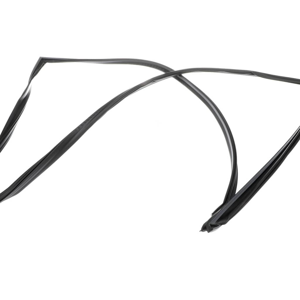 Introducing the Fresh Food Door Gasket in black from the renowned brand, Whirlpool. This genuine OEM part is paramount for maintaining the efficiency of some models of Whirlpool refrigerators. Its primary function is to create a seal around the door, thus preventing warm air from entering the fridge. Ensuring the gasket sits smoothly and crease-free is simple to achieve by soaking it in warm water or applying low heat with a hairdryer. To conduct this repair, remember to safely store any perishable food items elsewhere. The gasket features a sleek, black finish for added style and modern aesthetic.