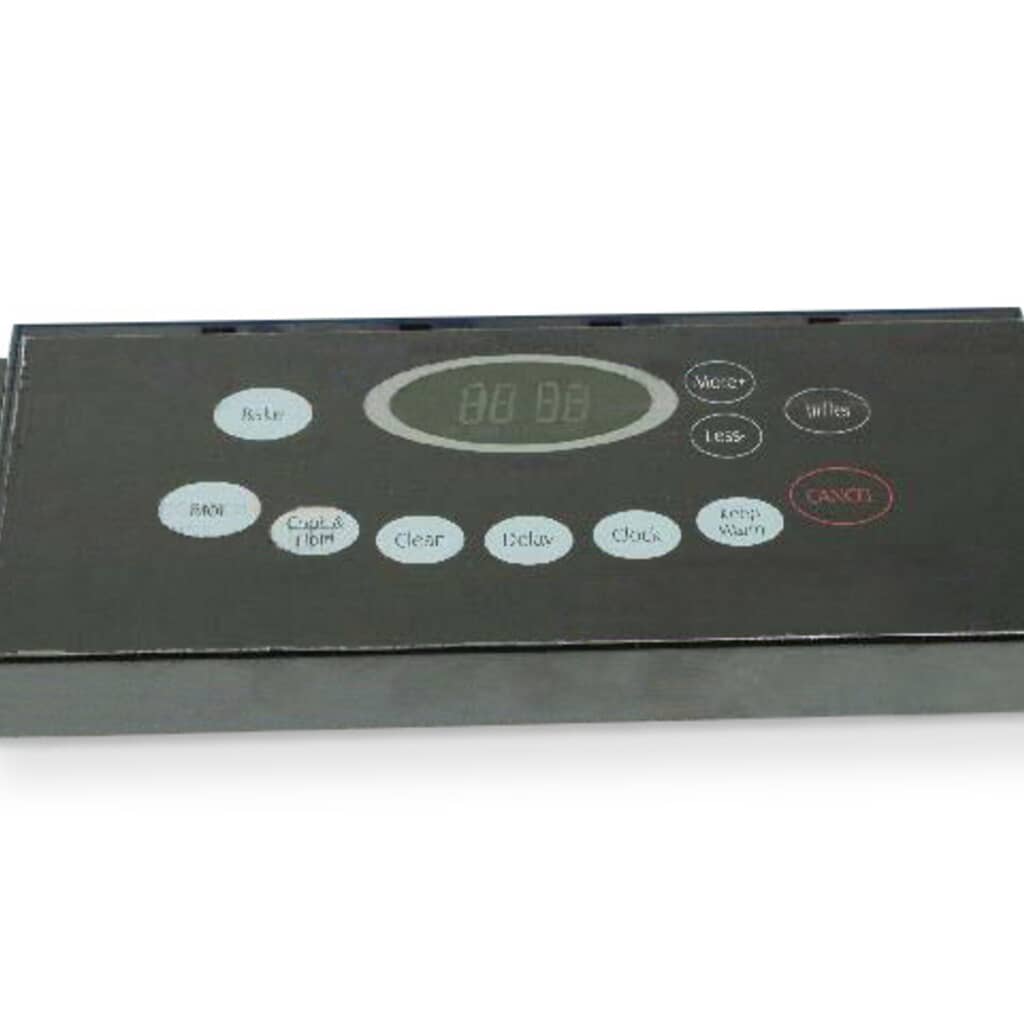 This oven control board and clock is for ranges. Oven control board and clock 5701M760-60 monitors the oven temperature and controls the oven heating functions in the range, and includes the digital display for the time and temperature settings. Unplug the range or shut off the house circuit breaker for the range before installing this part. Wear work gloves to protect your hands.